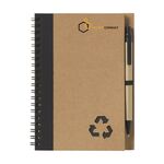 Environmentally friendly notebook made from recycled material with approx. 70 sheets/140 pages of cream, lined paper (70 g/m²), cardboard cover and strong spiral bound. Incl. blue ink ballpoint.