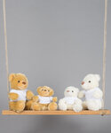 A cute mid brown coloured bear dressed in a removable white cotton T-shirt. Remove all hang tags and their fasteners before giving these items to a child.